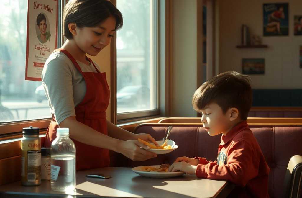 Die Kellnerin, die heimlich einem einsamen Jungen Essen gab – bis Soldaten mit einem Brief kamen und die ganze Stadt verstummte