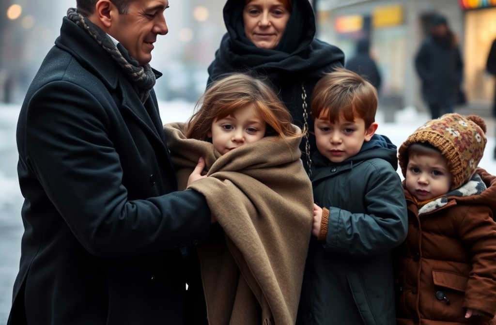 Przy murze stara ceglana ściana siedziała kobieta, owinięta w podartą kurtkę, która ledwo zasługiwała na miano odzieży. Włosy miała splątane od wiatru i dni pełnych beznadziei. Obok niej tuliły się troje dzieci — małe ciała ściśnięte razem, żeby się ogrzać, policzki zaczerwienione od mrozu, oczy zbyt mądre jak na ich wiek. Trzymała kartonową tabliczkę z napisem: