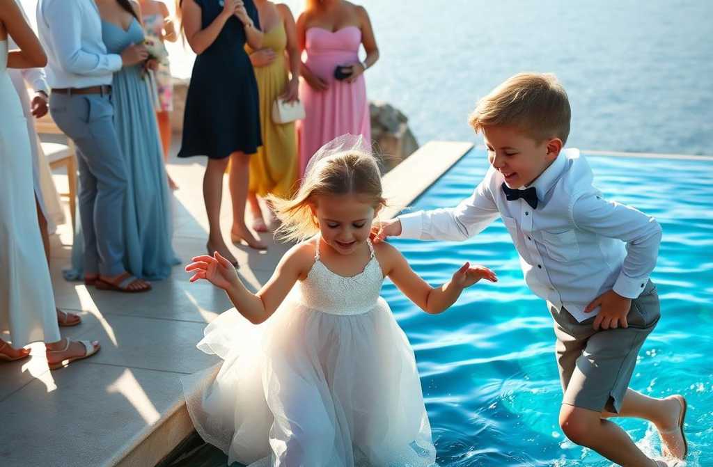 Jednak wśród tego przepychu i dźwięku kieliszków nikt nie zauważył małej postaci, która zbliżała się niebezpiecznie do krawędzi basenu.