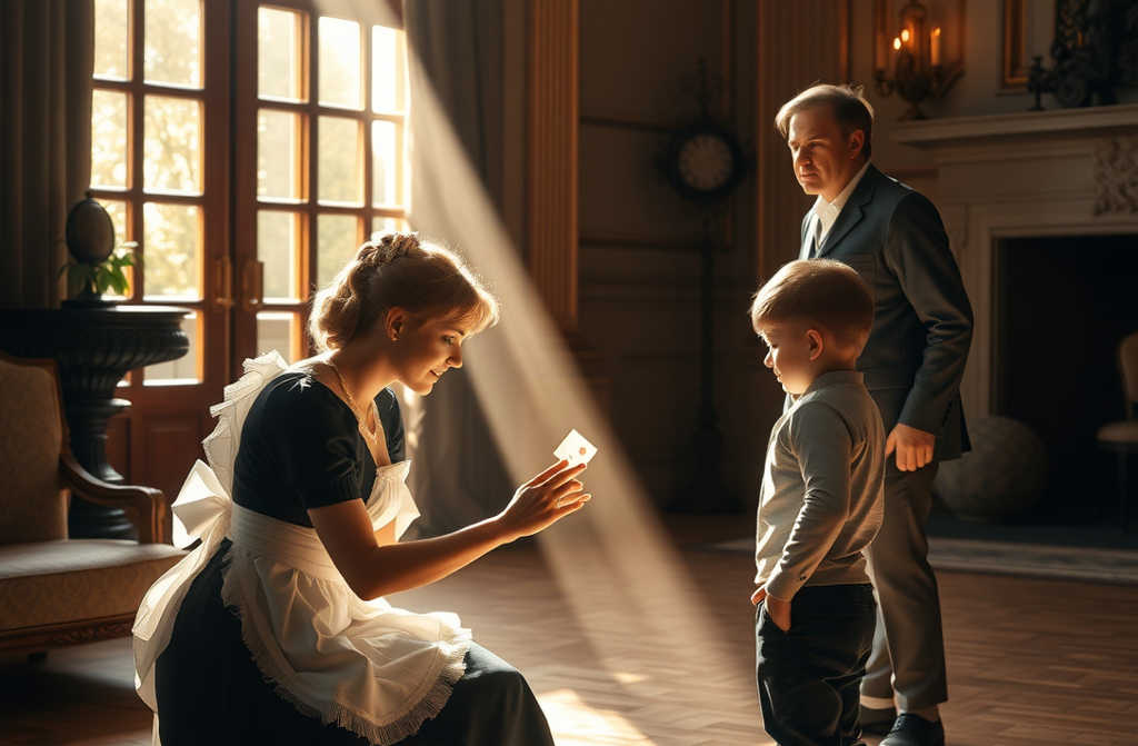 Das erste Mal, als Lieselotte Anton sah, saß er auf der Marmortreppe und ordnete Spielzeugautos in einer Reihe an. Er blickte nicht auf, als sie vorbeiging, doch sie bemerkte etwas Seltsames an ihm. Er bewegte sich nicht wie andere Kinder. Er war zu vorsichtig, zu still. Seine Augen waren erfüllt von etwas, das sie erkannte: Einsamkeit. Ab diesem Tag begann Lieselotte, kleine Dinge für ihn auf der Treppe zu hinterlassen. Ein gefalteter Papierhase, ein Stück Schokolade in Goldfolie, eine kleine Zeichnung. Anfangs reagierte Anton nicht. Doch eines Morgens war die Schokolade verschwunden, und die Papierhasen standen neben seinen Spielsachen. Langsam veränderte sich etwas. Wenn Lieselotte die Fenster in seinem Spielzimmer putzte, kam er näher und beobachtete ihr Spiegelbild. Sie lächelte und winkte. Irgendwann winkte er zurück. Als sie einmal eine Tasse fallen ließ, lachte er lautlos und hielt sich den Bauch. Es war das erste Mal, dass jemand in der Villa ihn lachen sah.