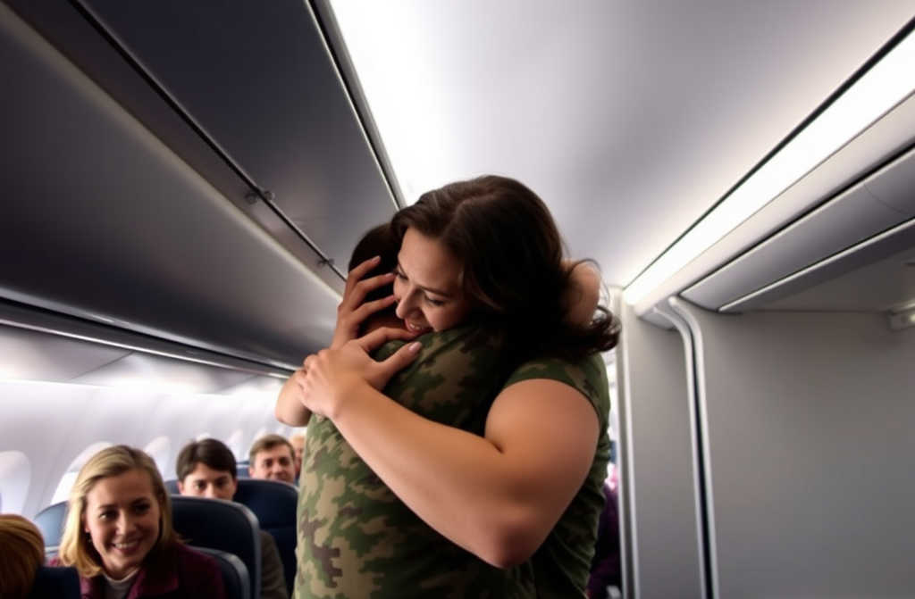 Tranen rolden over haar wangen. Ze sprong op, haar lichaam trilde, en ze viel in zijn armen, hem omhelzend alsof hij elk moment weer kon verdwijnen. De passagiers om hen heen stonden verstild, stille getuigen van dit diep ontroerende moment.