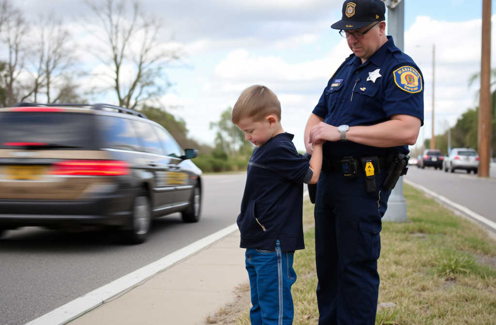 Kiedy funkcjonariusz go zauważył, jego pierwszą myślą było, że chłopiec może być bezdomny. Natychmiast zjechał na pobocze, wysiadł z radiowozu i ostrożnie podszedł do dziecka.