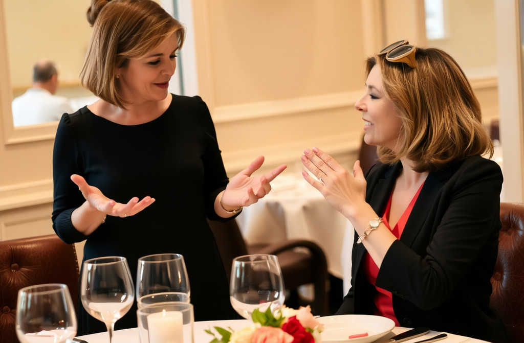 Die avond kwam er een beroemde gast binnen: Maarten van Dijk, een steenrijke zakenman, met zijn moeder, mevrouw Van Dijk, een elegante vrouw met zilverwit haar. Lotte merkte meteen dat mevrouw Van Dijk doof was—haar blik was afwezig, alsof ze gevangen zat in een stille wereld. Toen Maarten voor haar bestelde zonder haar te vragen, aarzelde Lotte niet. Ze gebaarde: *Goedenavond, mevrouw. Wat mag ik voor u brengen?*