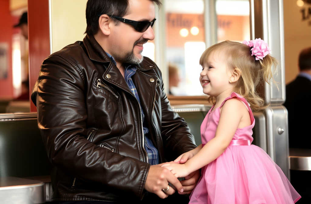 Ik nam veel ruimte in. Dat wist ik. Ik ben 1 meter 95, gebouwd als een vriezer, met een baard en een leren jas die tegen iedereen schreeuwt: “Blijf weg.” Mijn helm lag op tafel, vol stickers van kroegen tussen hier en het TT-circuit in Assen. Ik zocht geen problemen, alleen wat cafeïne.