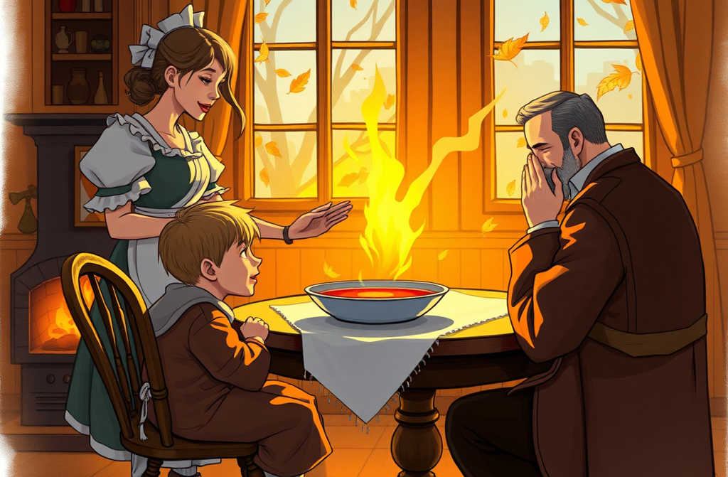 Het jongetje aarzelde, maar bij het zien van Janneke’s warme glimlach, zette hij een stap naar voren. Zijn modderige voeten lieten vegen achter op het marmer, maar Janneke maakte zich daar geen zorgen om. Ze bracht hem rechtstreeks naar de keuken, de enige plek waar het landhuis écht menselijk aanvoelde. De lucht rook naar versgebakken brood en dampende soep.