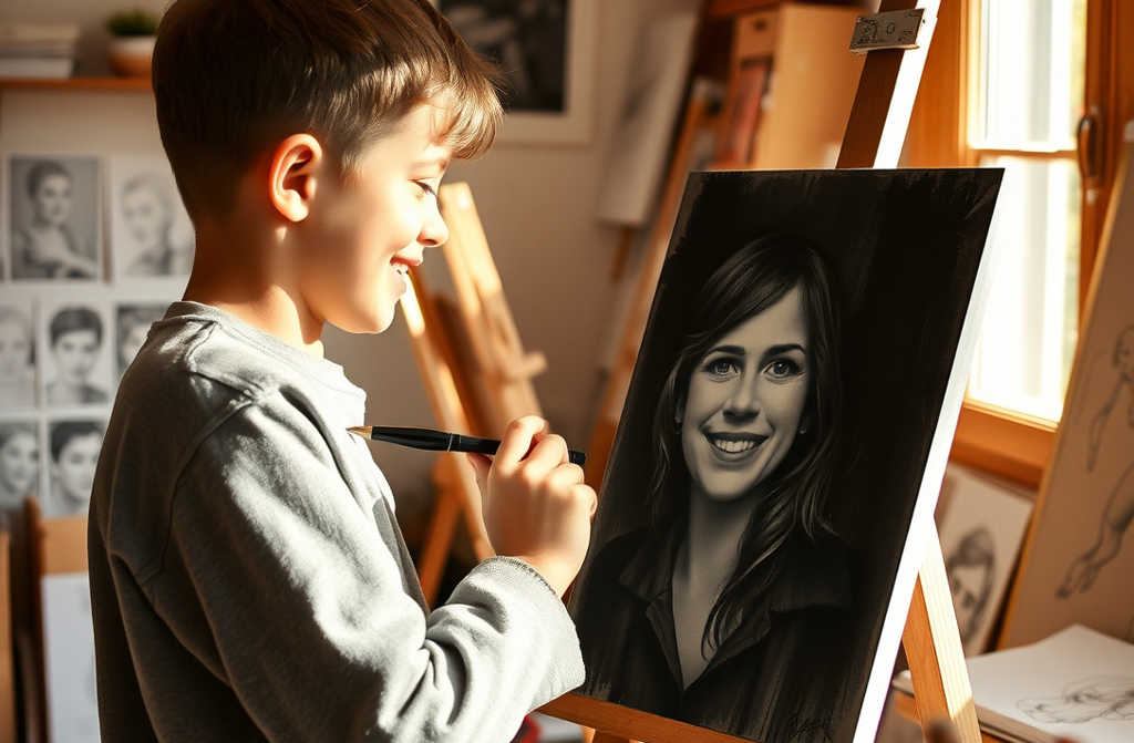 Die Klasse gehorchte. Aufgespannte Leinwände, glänzende Acrylfarben, Pinsel aus feinstem Haar. Werke, deren Farben schrien: „Ich gehöre hierher.“ Tim hingegen hatte nur ein vergilbtes Stück Packpapier dabei und ein Porträt, das er ausschließlich mit Kohle gezeichnet hatte.