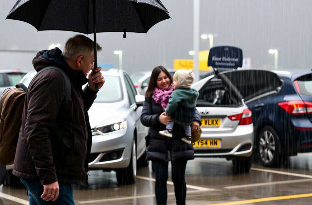 Mijał już ostatnie budynki przed portem lotniczym, gdy nagle dostrzegł kobietę stojącą pod ścianą wody z małym dzieckiem na rękach. Przez chwilę walczył z pokusą, by nie zwalniać i jechać dalej, lecz sumienie zwyciężyło. Zatrzymał samochód, wysiadł i podszedł do niej.