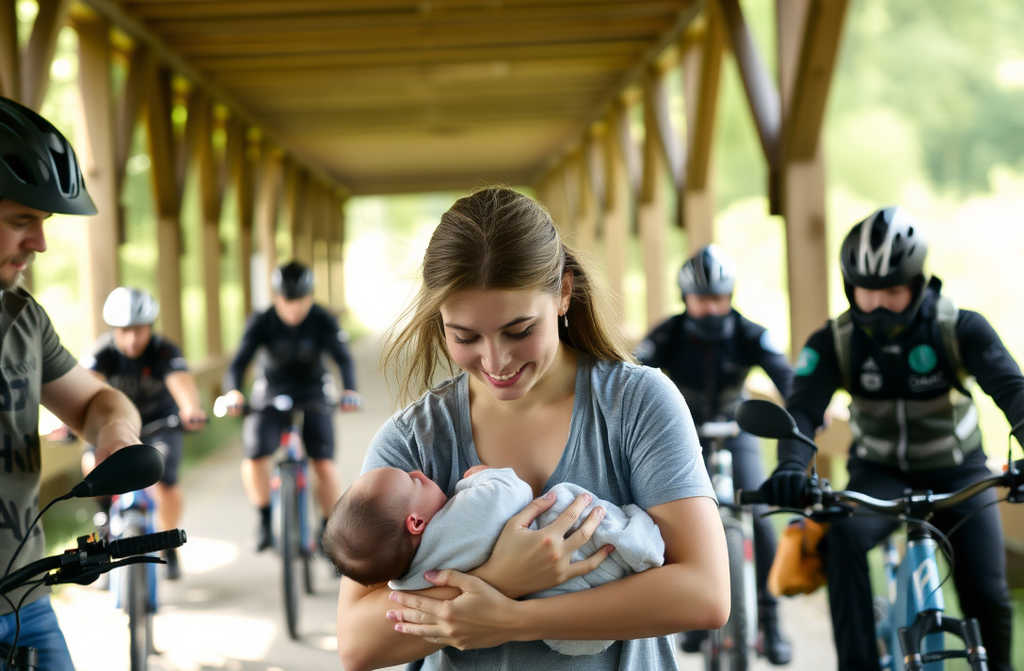 “Je hebt hier bevallen?” Een andere motorrijder, oudere man, misschien zestig, stapte naar voren. “In een ziekenhuis?”