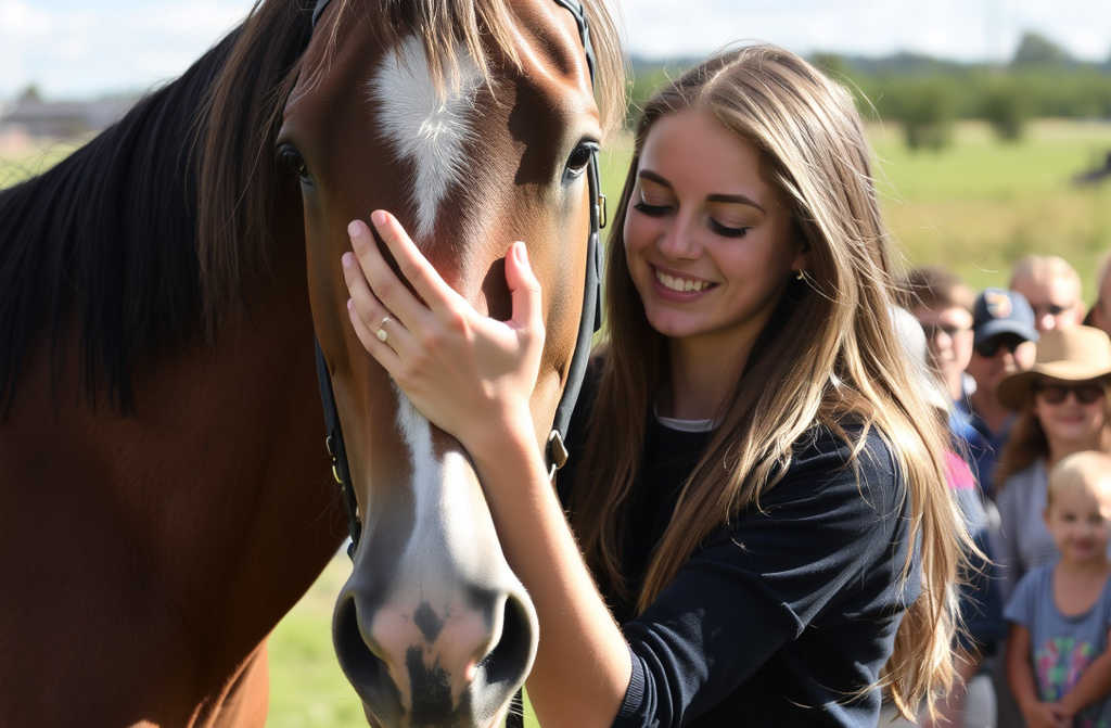 Ze aaitte het paard. Langzaam. Met zachte bewegingen. En toen deed ze iets wat niemand verwachtte.
