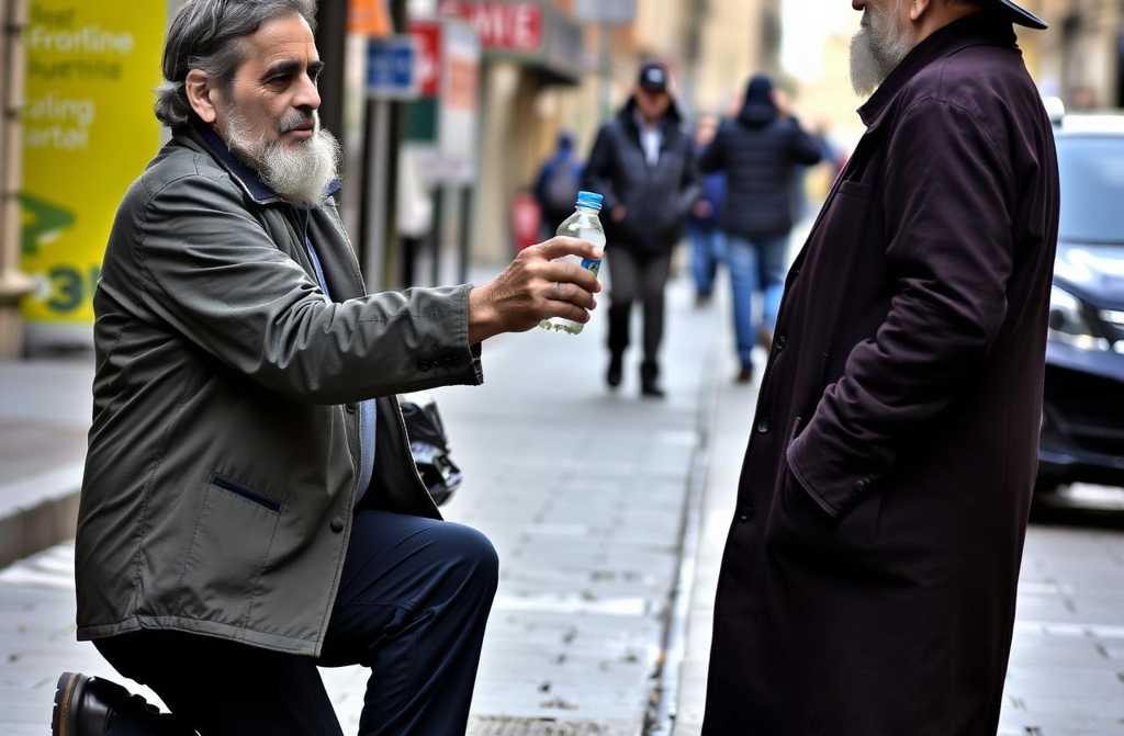 Der Mann sah mich an, als hätte ich ihm einen Schatz gegeben. Seine Augen füllten sich mit Tränen, als er die Flasche nahm.