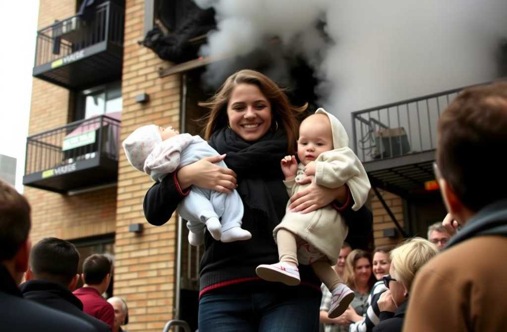 Mężczyzna zawahał się, patrząc na nią w niedowierzaniu. Drzwi były otwarte, dym wylewał się na zewnątrz — a jednak nikt nie odważył się wejść.