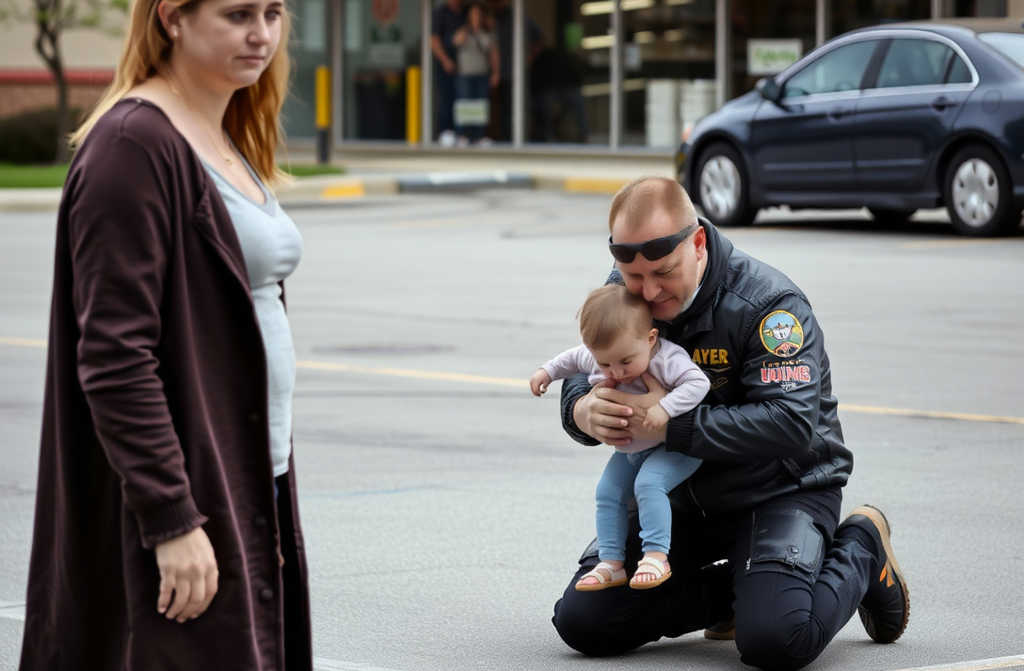 Wszędzie stały radiowozy. Strażnicy sklepowi, pracownicy. Ktoś zadzwonił na policję, gdy znaleźli porzuconą dziewczynkę. A teraz ten motocyklista był w centrum uwagi, trzymając moją córkę i nie pozwalając nikomu jej zabrać.