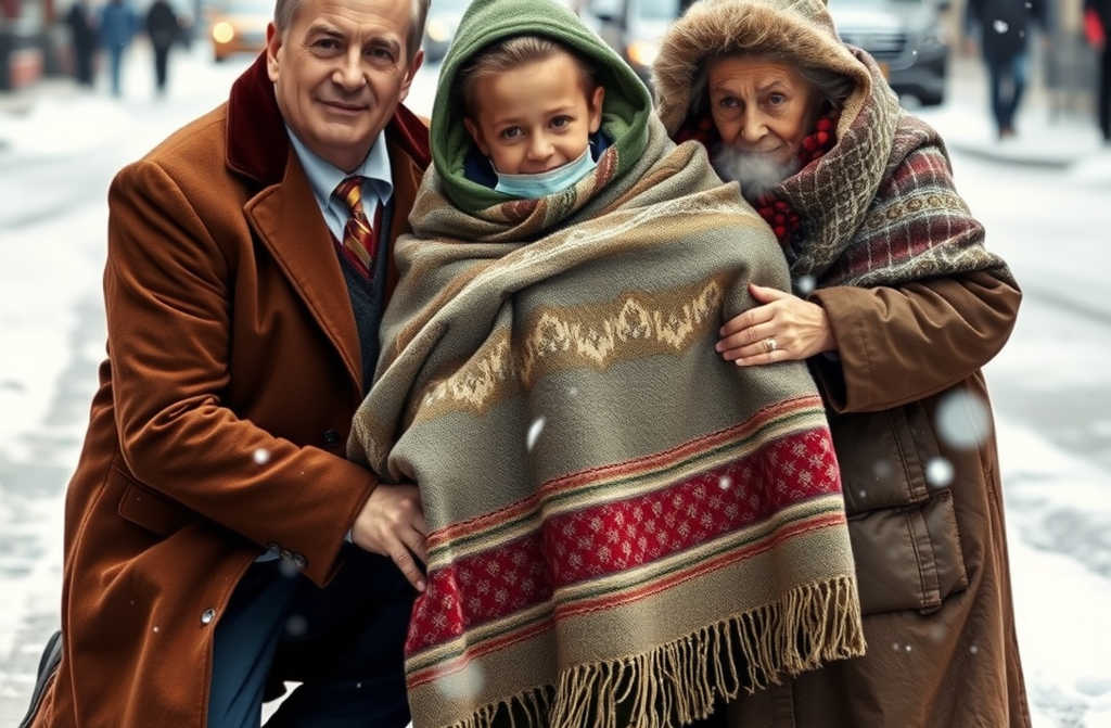 Els van Dijk, drieënzeventig jaar, de elegante weduwe van de beroemde Anton van Dijk, zat op de natte stoep, bibberend. Naast haar, bijna haar ondersteunend, stond een jongen met een verwaarloosde baard en donkere ogen, gehuld in lagen vuile kleren. Hij had zijn eigen deken over haar schouders gelegd en hield haar bijna beschermend vast, als een schild tegen de ijzige wind.