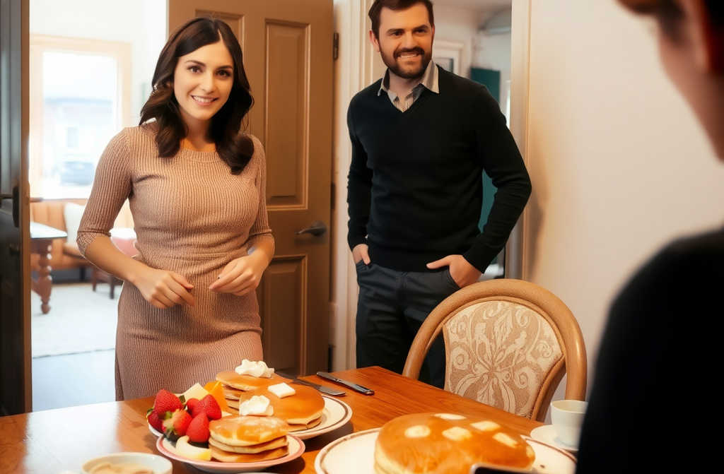 Toen Maarten eindelijk wakker werd, zich uitrektend op die luie, zelfvoldane manier die hij altijd had na een avond waarop hij dacht de “controle” te hebben hersteld, liep hij de warme geur van pannenkoeken achterna de eetkamer in. Zijn blik gleed over de tafel: een stapel pannenkoeken, perfect gebakken eieren, vers fruit, zelfs koffie precies zoals hij hem dronk.