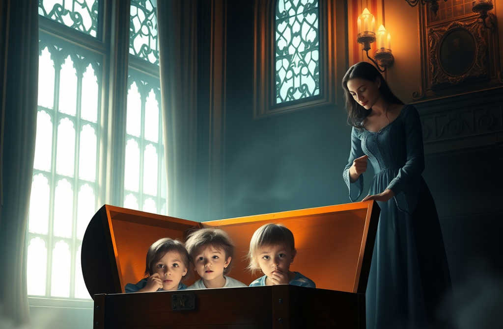 Eine massive Holztruhe, dunkel und schwer, mit schmiedeeisernen Bändern verstärkt. Sie war riesig – fast so groß wie ein kleiner Sarg.