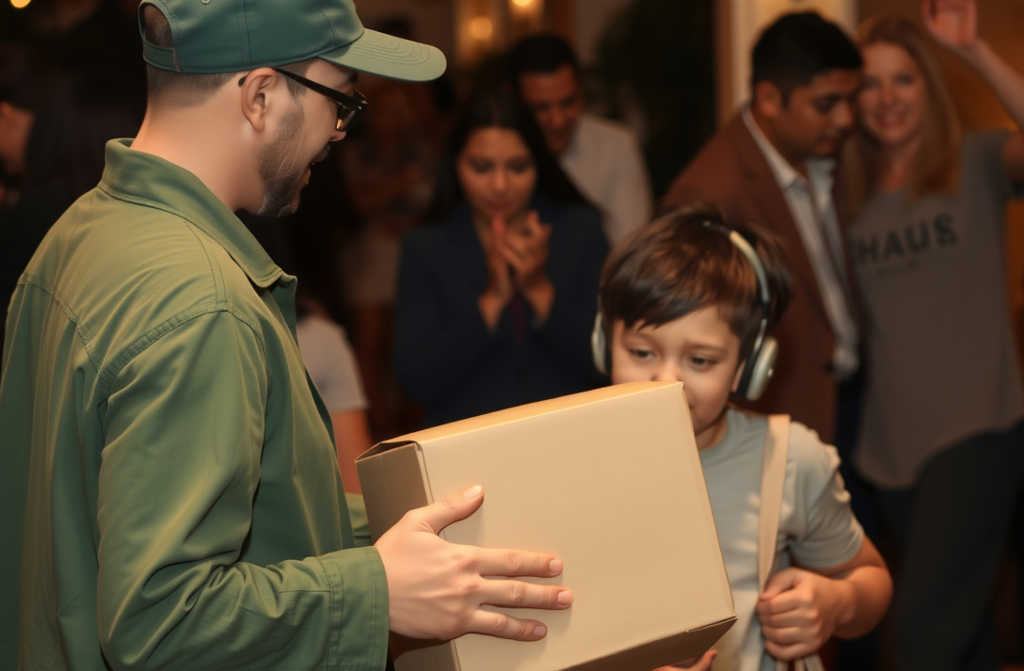 Wzrok dostawcy przemknął w stronę mojego syna.