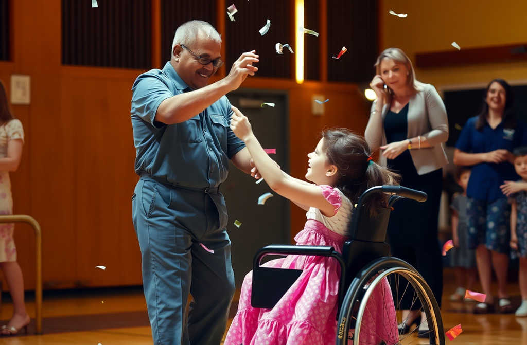 Samotny ojciec tańczy z niepełnosprawną dziewczynką, nieświadomy, że jej bogata matka patrzy.