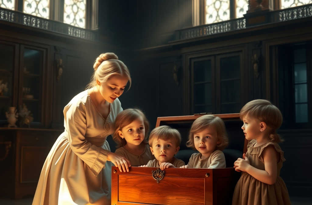 Kasia delikatnie opuściła wieko skrzyni, upewniając się, że zostaje uchylone, lecz nie zamknięte. Potem wyprostowała uniform, chwyciła wiadro i wyszła, zamykając drzwi jak najciszej.
