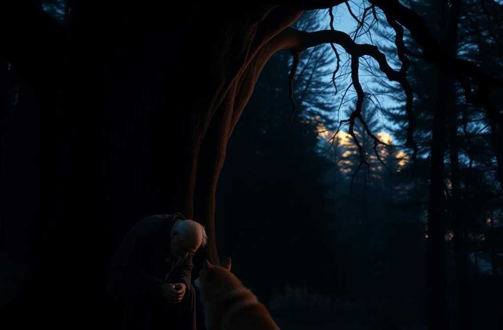 Dzisiejszy wieczór wypełnia mnie smutkiem i zadumą. Las wokół pogrążył się w gęstym mroku. Na wilgotnej ziemi, pod starym dębem, siedział starszy mężczyzna. Jego oddech był ciężki, dłonie drżały z zimna, a w oczach malowała się bezsilność. Własne dzieci przywiozły go tutaj i porzuciły jak niepotrzebny grat.
