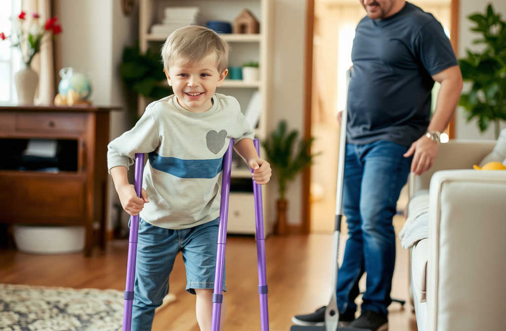 *”Ich helfe Tante Luisa, Papa! Schau!”* Jonas wackelte stolz auf seinen Gehstützen auf ihn zu. *”Heute habe ich es geschafft, fast fünf Minuten allein zu stehen!”*