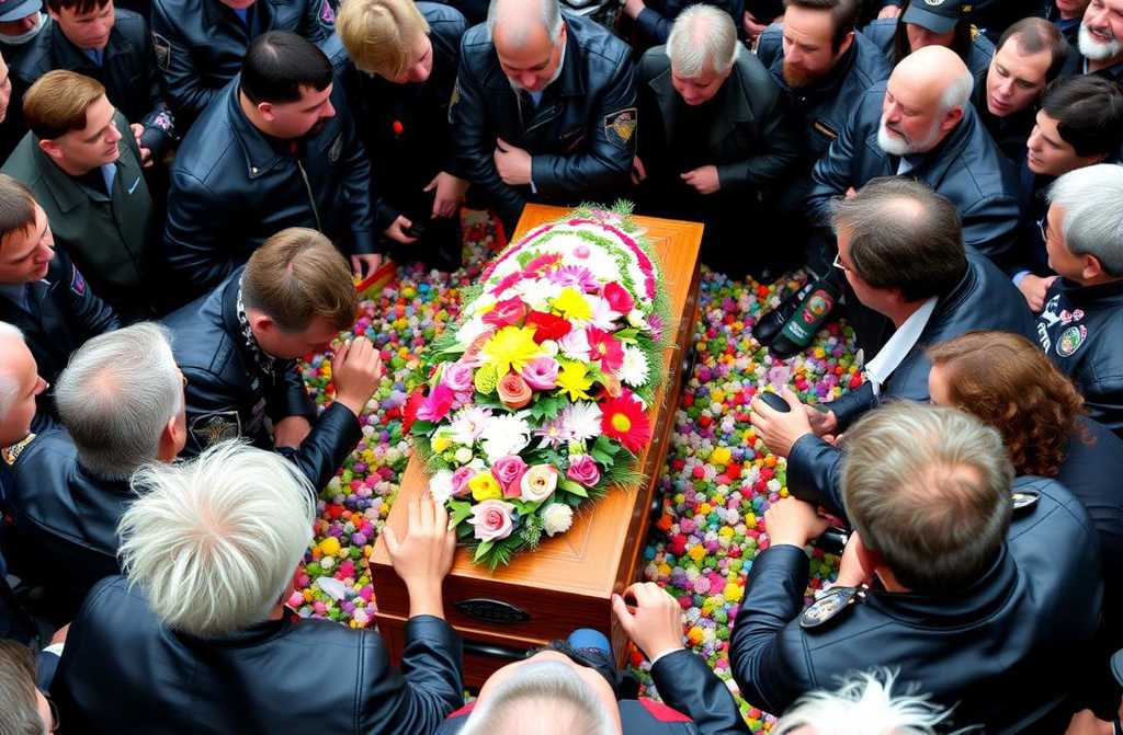 Kaplica zaczęła się wypełniać. Twardzi mężczyźni, niejednemu z łzami w oczach, mijali trumnę. Ktoś przyniósł pluszowego misia. Inny – zabawkowy motocykl. Wkrótce trumna była otoczona darami – zabawkami, kwiatami, nawet skórzaną kurtką z naszywką *„Honorowy Jeździec”*.