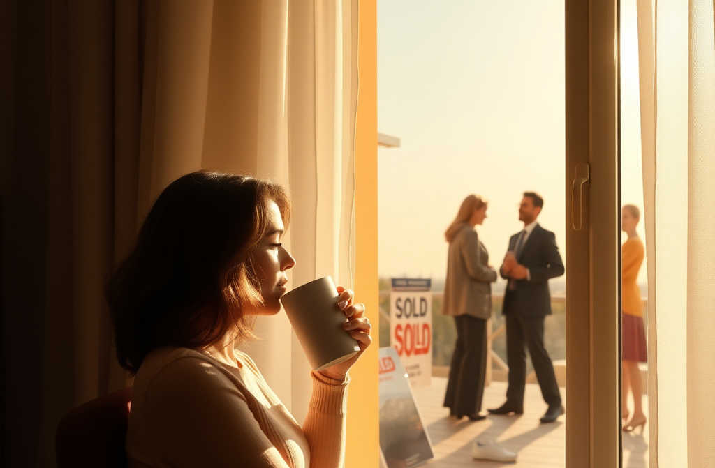 Na telefonie kamera przy drzwiach pokazuje ich wciąż zastygłych przed tablicą „SPRZEDANE”, trójkę ludzi nagle uczulonych na konsekwencje.