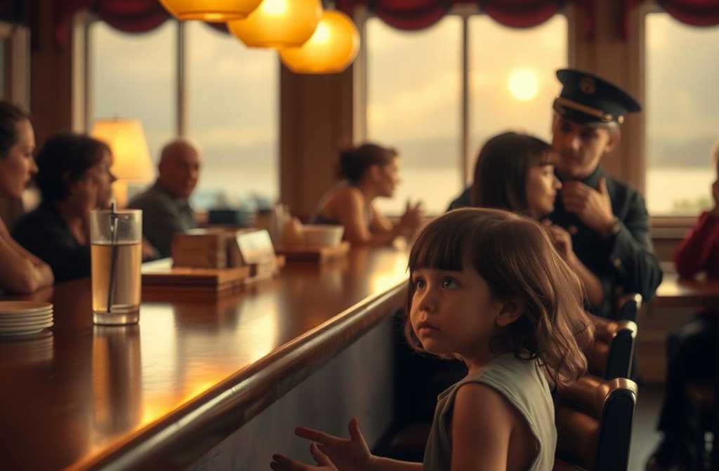 Ein kleines Mädchen, kaum drei Jahre alt, saß neben einem Mann, der sich der Kellnerin lautstark als ihr Vater vorstellte. Ihr blasses Gesicht war von ordentlichen Zöpfen umrahmt, und sie wirkte ängstlich, ihre Augen huschten unruhig umher. Plötzlich hob sie eine kleine Hand, legte den Daumen in die Handfläche und schloss die Finger darüber – das international bekannte Notsignal. Friedrichs Puls beschleunigte sich, doch sein Gesicht blieb neutral.