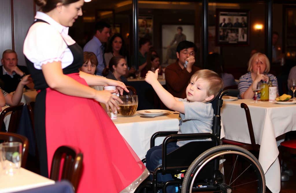 Janusz poczuł ściśnięcie w piersi. Wiedział, że jego syn marzy o tańcu jak inne dzieci, ale zawsze myślał, że to niemożliwe. W tej chwili podeszła do nich ich kelnerka.