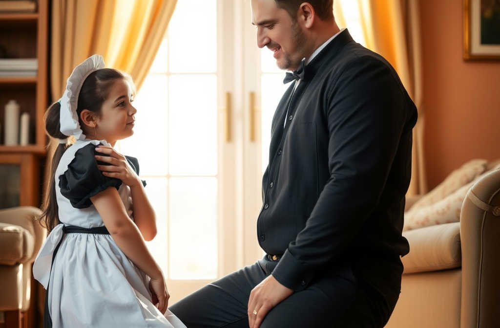 De kamer was stil. Zonlicht stroomde door de hoge ramen van het herenhuis in Amsterdam-Zuid en speelde met de gouden gordijnen. Op het brede bed lag Liesbeth, haar hoofd begraven in een zacht kussen, haar ademhaling zachtjes hoorbaar. In haar rechterhand klemde ze een dweilstok, alsof ze midden in het werk was ingeslapen. Naast haar stond een emmer met sop, vergeten. Haar zwart-witte dienstmeisjesuniform was verfrommeld, licht vochtig van het zweet. Haar donkere gezichtje zag er moe uit, maar vredig.