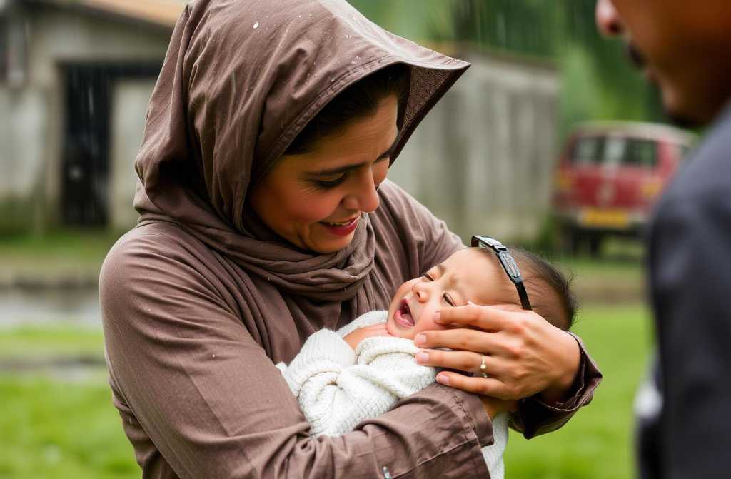 Greta drückte ihr Baby Lena fester an sich und zog mit der anderen Hand ihre durchnässte Jacke aus, um sie dem Jungen um die Schultern zu legen. Ihre eigenen Lippen waren blau vor Kälte, doch sie zögerte keine Sekunde. „Wo sind deine Eltern, Maximilian?“, fragte sie sanft, während sie ihn mit ihrem Körper schützte und Unterschlupf unter einem Ladenvorbau suchte.