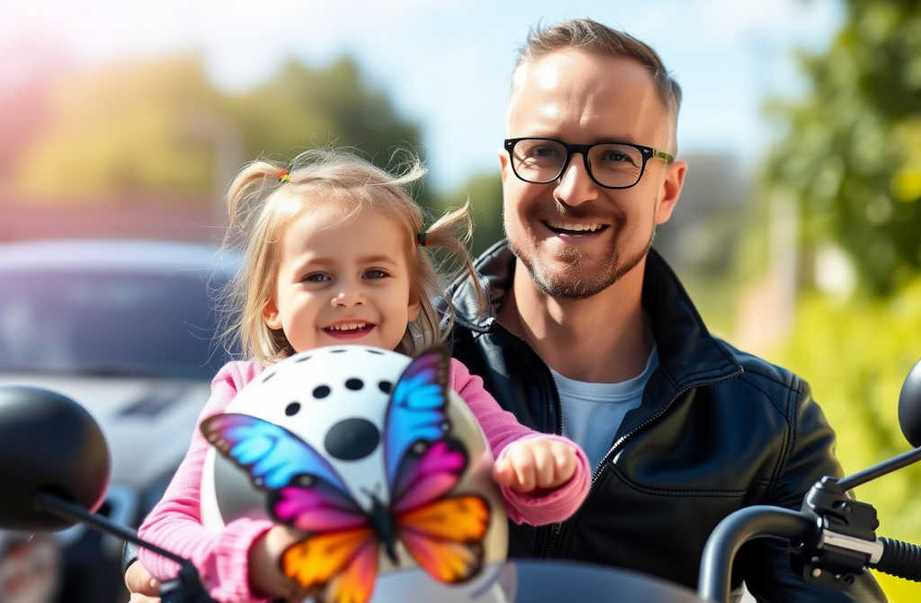 Robi to cały czas. Zosia uwielbia te przejażdżki. Ma swój własny mały kask z motylkami. Obejmuje go mocno w pasie i chichocze przez całą drogę do domu.