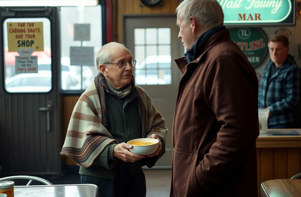 Szczęka mężczyzny drżała, gdy przełykał. Maria się nie spieszyła. Nie odwróciła wzroku. Karmiła go łyżka po łyżce, z cierpliwością, jaką kiedyś darzyła matkę, jakby godność znaczyła więcej niż przepisy czy godziny otwarcia.