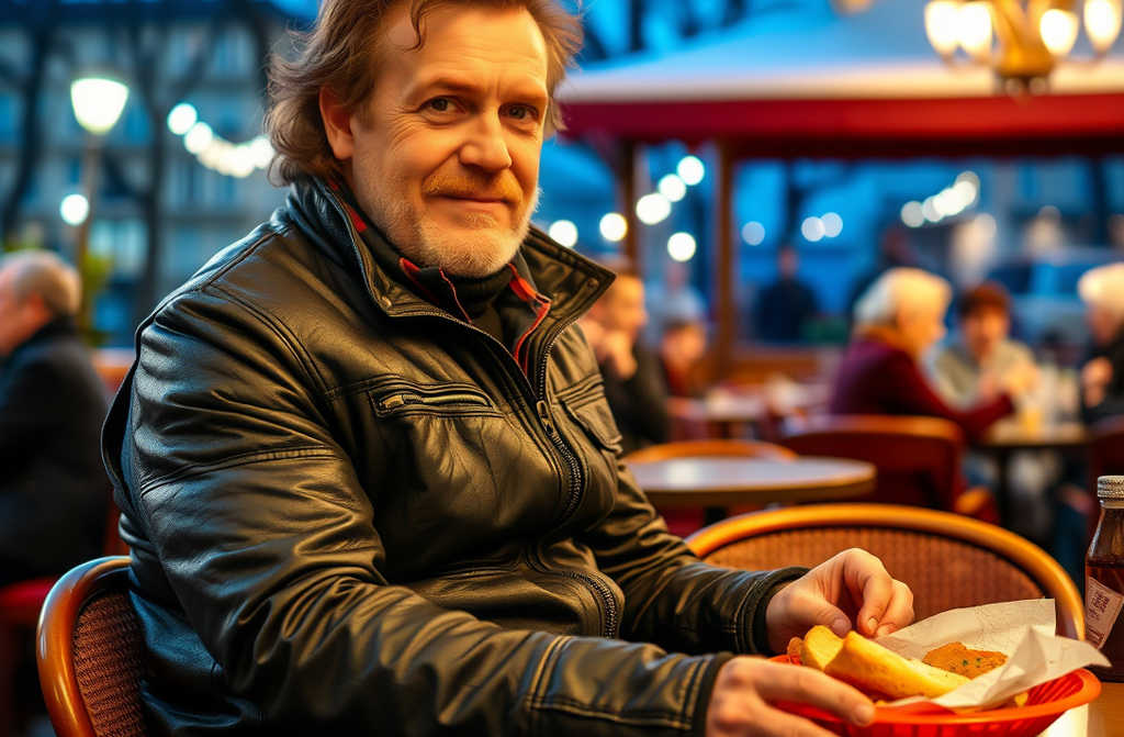 Kelnerka podała mu jedzenie przez drzwi na taras. Jadł sam, oddech zamieniał się w mgiełkę w nocnym powietrzu, a my wszyscy udawaliśmy, że go nie ma.