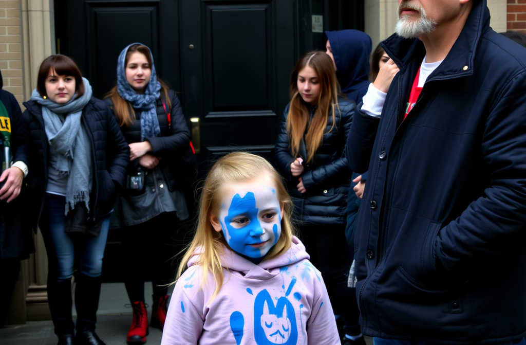 Stała przy bocznym wejściu, z dala od głównych drzwi, ustawiona jak niechciany przedmiot, a nie jak dziecko. Była całkowicie przemoczona gęstą, kobaltową farbą, taką jakiej używa się na elewacje, przyklejoną do jej włosów, rzęs, skóry, pękającą, gdy próbowała się poruszyć. Była tak nieruchoma, tak cicha, że przez chwilę mój umysł odmówił przyjęcia tego, co widziały oczy.