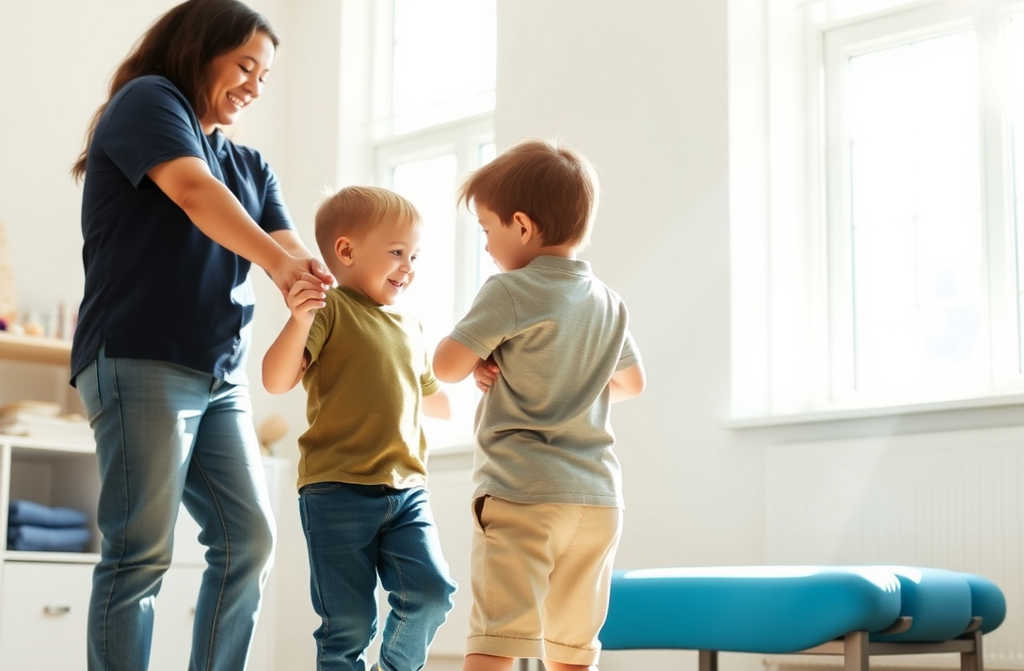 Na miękkiej macie siedzieli moi synowie-bliźniacy, ich chude nogi wyciągnięte przed siebie, a obok klęczała Róża Nowak, delikatnie dotykając ich łydek, mówiąc tak spokojnym głosem, że aż nierealnym.