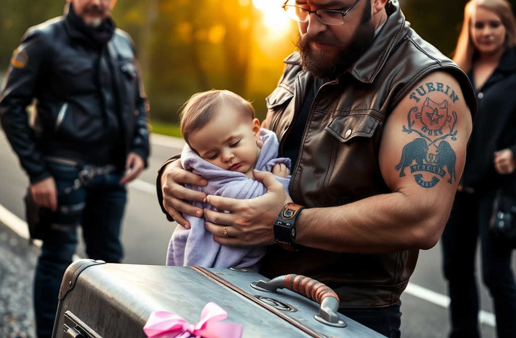 Reszta mężczyzn otoczyła walizkę, tworząc półkole z dżinsu i skóry. Nikt nie mówił. Nikt nie przeklinał. Po prostu wpatrywaliśmy się w tę niemożliwą scenę. Dziecko zapakowane jak bagaż, pozostawione przy drodze, gdzie wszystko — wilki, upał, nieuważny kierowca — mogło ją zabić.