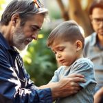 „Postąpiłeś dobrze” — powiedział, kładąc dłoń na ramieniu chłopca. „Byłeś dzielny. Zostań tutaj, gdzie jest bezpiecznie.”