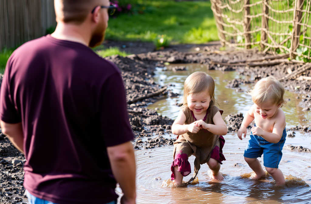 Wyszedł z samochodu. Zapach mokrej ziemi uderzył w niego — ziemski, surowy. Jego czteroletni bliźniacy, Kacper i Karol, wrzaskliwie wyrażali radość, pomagając sobie nawzajem utrzymać równowagę w śliskiej kałuży.